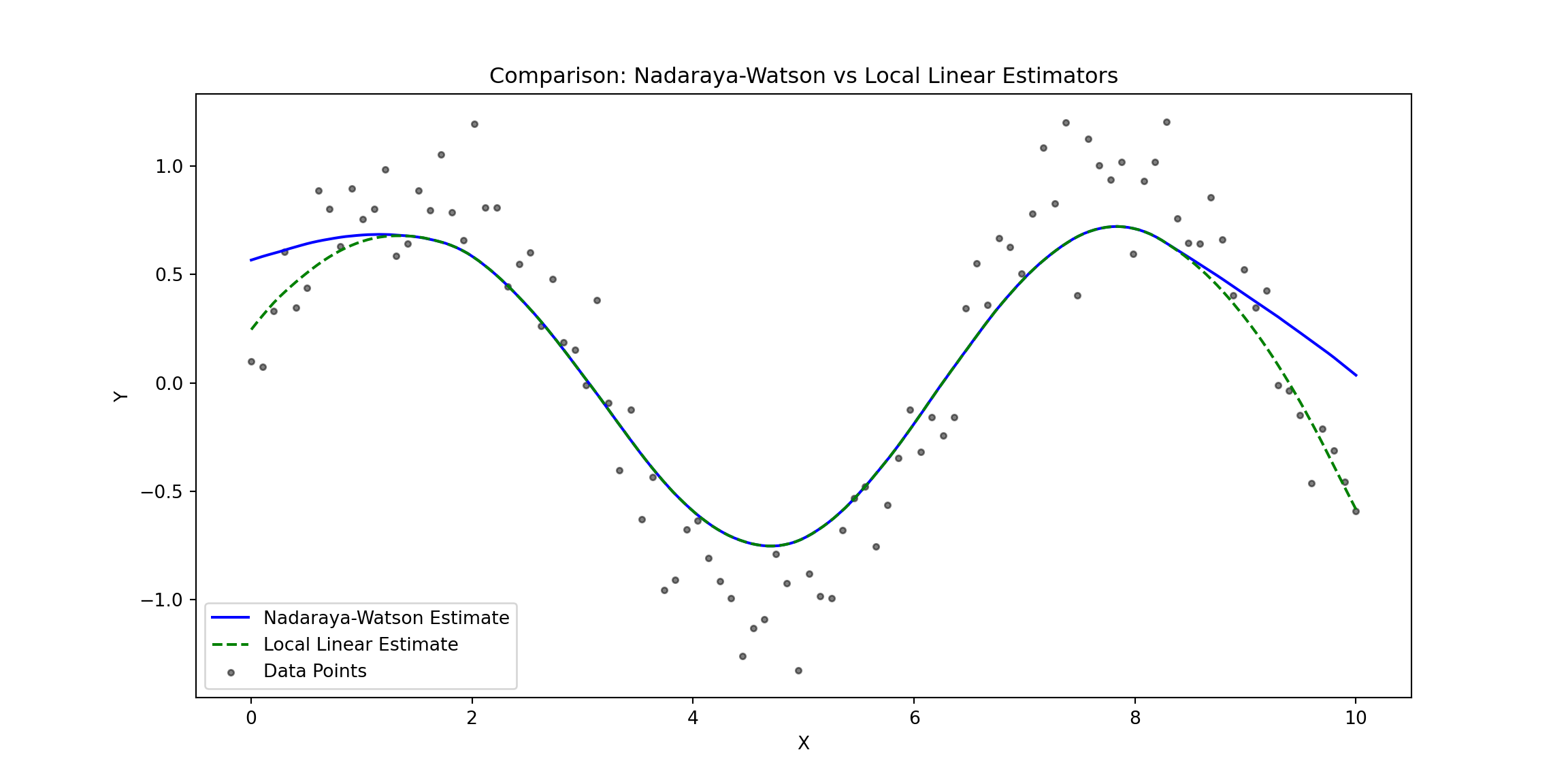 # Plot Comparison: Nadaraya-Watson vs Local Linear Estimators